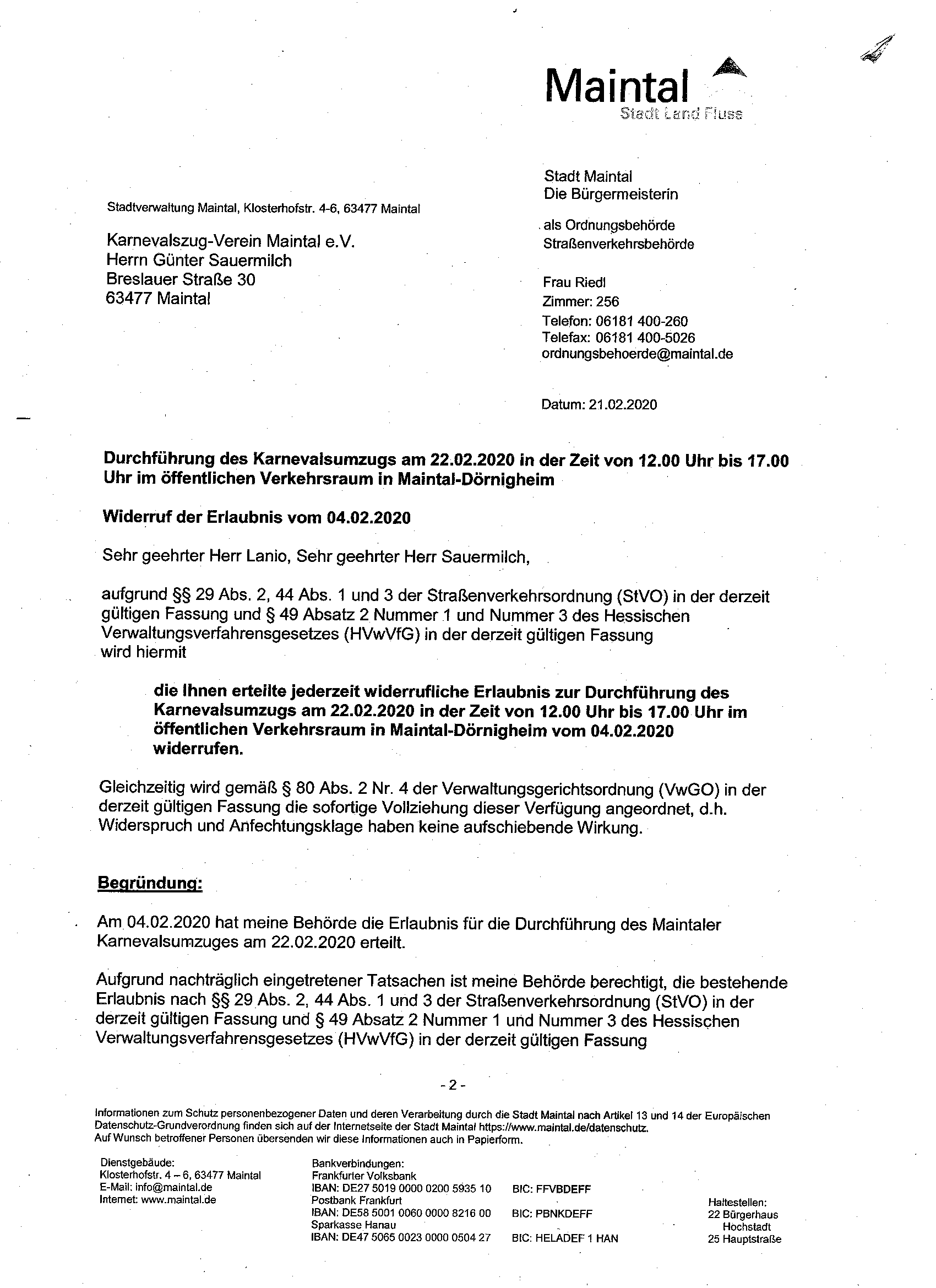 Aufstellung ab 13 Uhr in der Berliner Str.Maintaler Karnevalsumzug 2023 findet statt